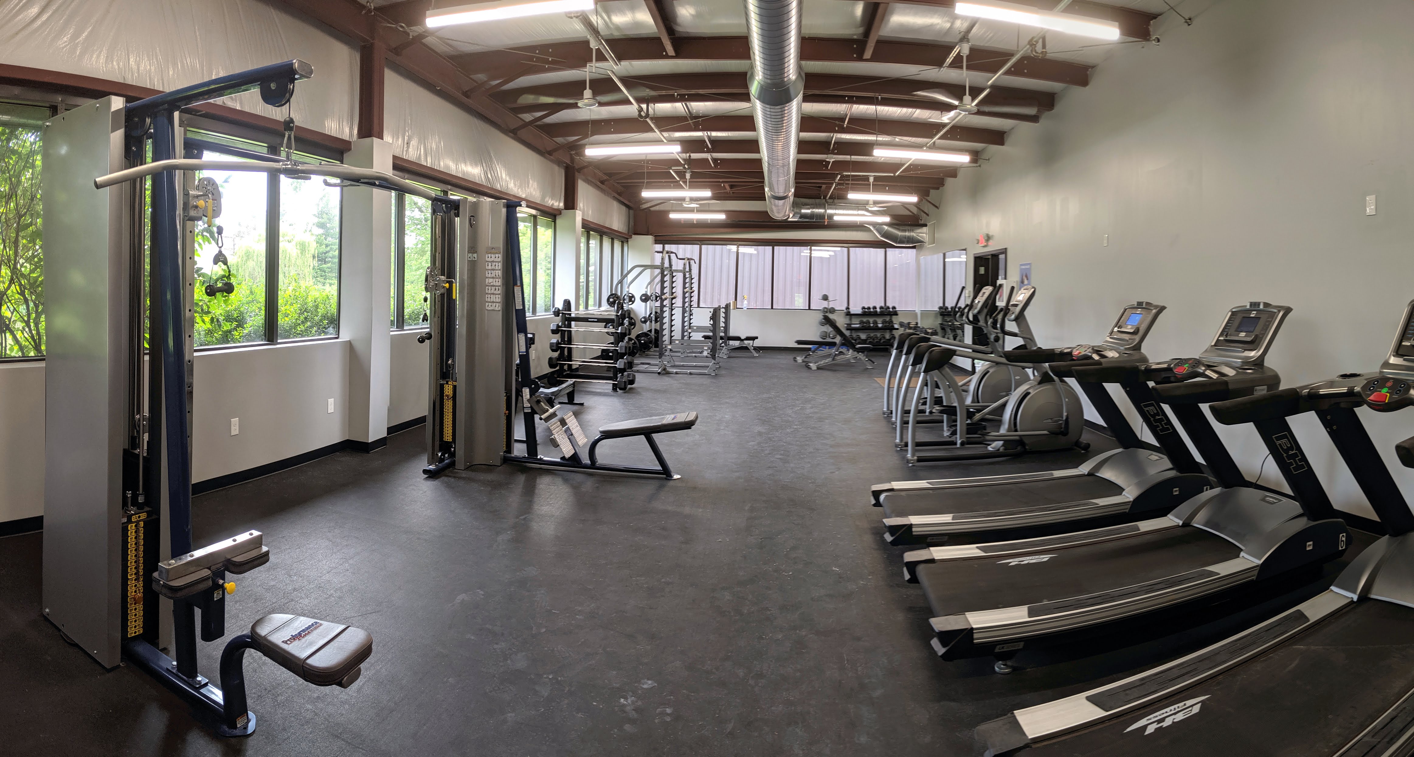 In the back there is a full work-out gym with cardio and weights plus several other machines.